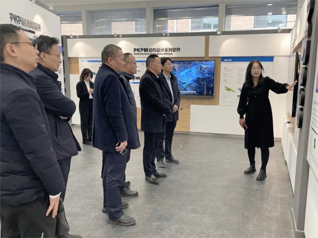 會(huì)前,梁超一行參觀了中國建研院展廳、中建研科技數(shù)字科技展廳,了解了中國建研院的歷史與發(fā)展,以及中建研科技在國產(chǎn)自主軟件開發(fā)、關(guān)鍵核心技術(shù)攻關(guān)及最新BIM應(yīng)用方面的研究成果。