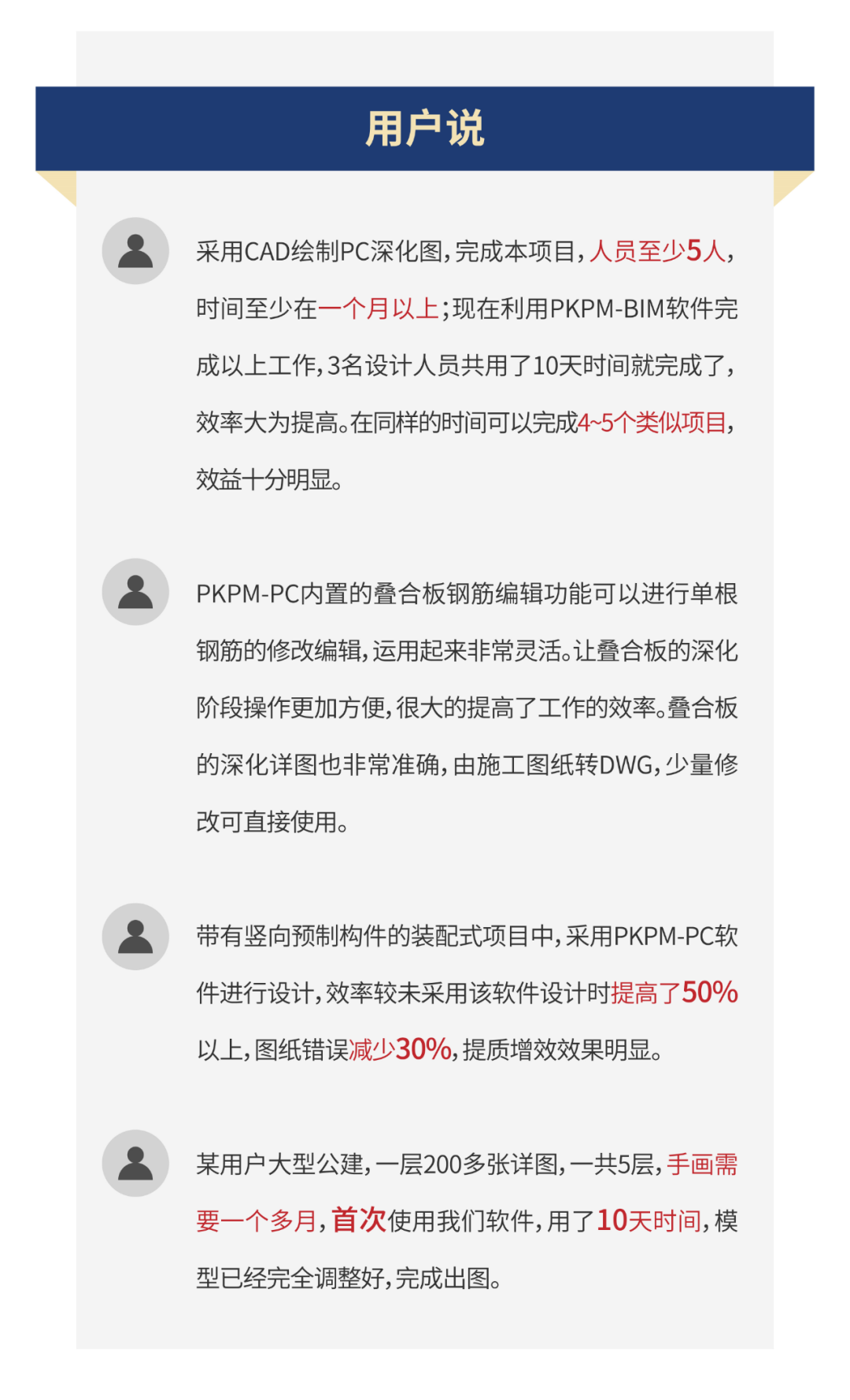 項目成果PKPM-PC提供了多種契合規范的智能化設計手段和輔助工具,基于PKPM-BIM平臺實現了裝配式結構分析、構件拆分與預拼裝、 國標及多地裝配率計算、構件安全驗算、構件深化設計與碰撞檢查、自動出圖、自動統計清單、生產數據導出等。經廣大用戶驗證,PKPM-PC可滿足裝配式結構計算、方案設計和深化設計的不同需要。