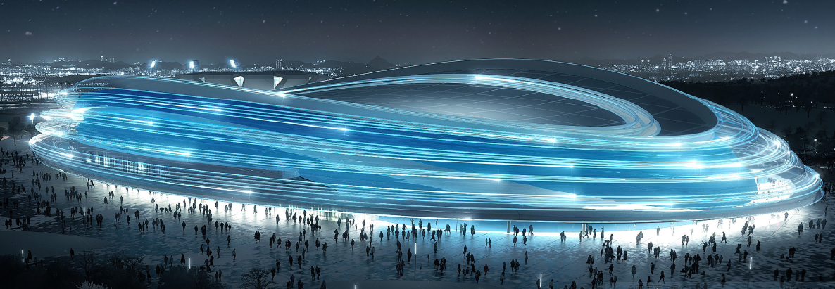 國家速滑館,它有一個晶瑩美麗的昵稱 — “冰絲帶”。由象征著2022年的22條“冰絲帶”交織成繭,新一代的奧運之星從此破繭而出。“冰絲帶”的建筑立面線條流暢、造型富有動感,像速滑運動員在冰面上高速滑動,留下的一圈圈風馳電掣的軌跡,體現了冰上運動的速度和激情!