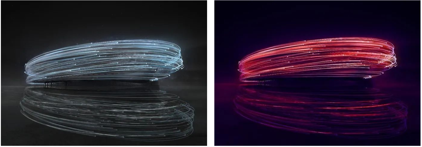 上圖為普通建筑與超低能耗建筑在紅外線狀態下熱成像對比,通過幕墻團隊不斷的方案比選,最終實現了科技與自然的和諧共生。
