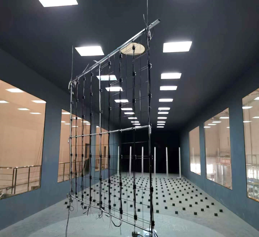 網幕國旗其實是一面巨型索網LED,透風率極高,現有的技術手段很難評估它所受的風荷載。為了保障巨型網幕的安全性,風工程團隊開展了一系列的風洞測試和分析計算工作,最后,通過變風速變風向的詳細分析,評估纜索張力及對吊車起吊能力的需求,為吊車最終的選型提供了重要依據。