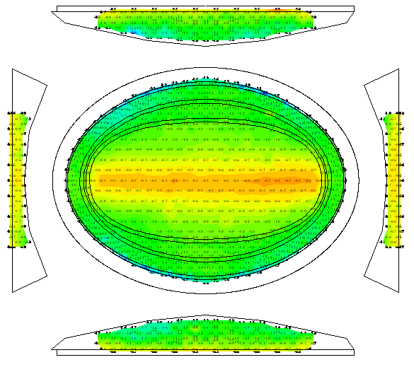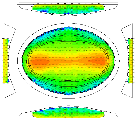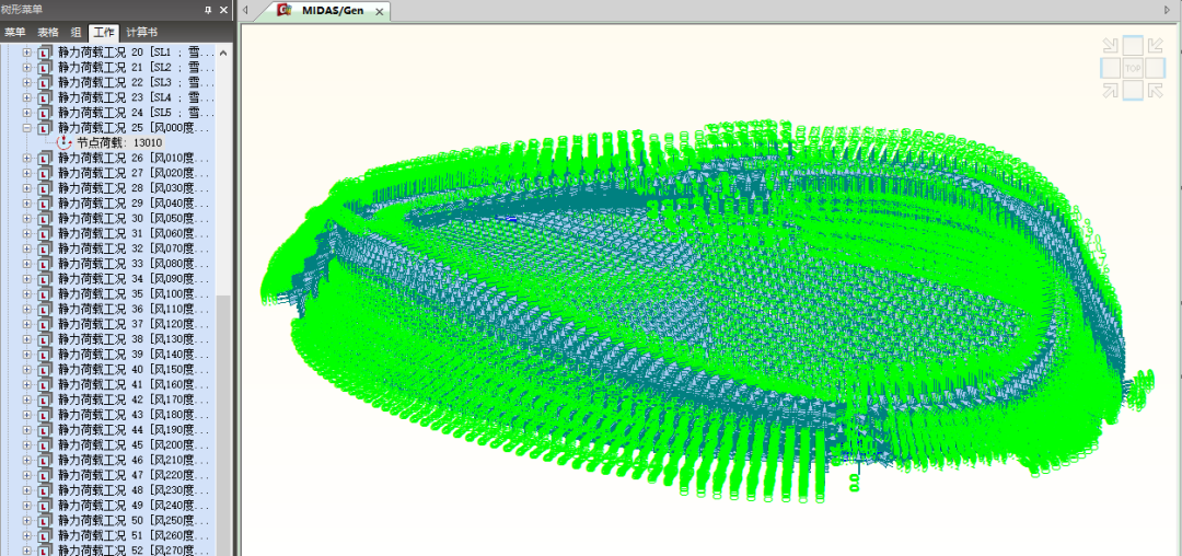 “冰絲帶”的屋頂結構采用單層索網結構形式。為了合理準確地評估如此巨大的單層索網屋蓋在風荷載作用下的性能,以及圓管對幕墻局部的荷載影響,風洞試驗研究設置了兩種工況:一種是幕墻外配有環向管的情況,另一種是拆掉環向管的情況。通過兩種工況的對比試驗,可以清楚地發現,帶環向管時玻璃幕墻表面的風壓分布會比較均勻。結合試驗測試數據進行的風致振動分析,給出了結構工程師最為關心的各個風向下的等效靜力風荷載。