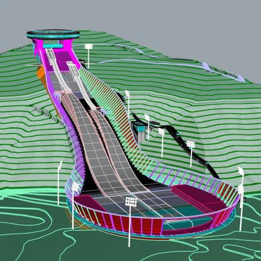此外,風工程團隊還完成了國家跳臺滑雪中心項目的風洞試驗。該項目是北京冬奧會張家口賽區工程量最大、技術難度最高的競賽場館,也是我國首座跳臺滑雪場館。頂部與底部落差達160多米,外形好似中國古代象征吉祥的擺件——如意,因此得名“雪如意”。由于周邊山地影響,該項目的風荷載計算非常復雜。風工程團隊承擔了風洞試驗和風振計算,為設計方提供了準確的風荷載計算取值依據。