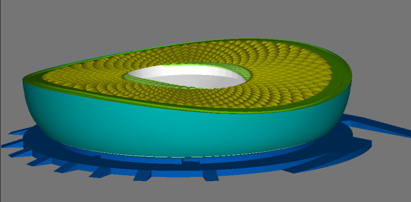 盧賽爾城當地3s陣風基本風速為38m/s,風工程團隊在風洞中制作了1:250的模型,按照ASCE/SEI7-16和ASCE/SEI49-12的要求進行了風洞試驗和相關數據處理,給出了36個風向下風壓系數分布以及50年重現期下極值壓力的統計值。根據風洞試驗數據,對盧塞爾體育場的風振響應進行了分析,并提供了50年一遇的等效靜風荷載。夏馬風是中亞及波斯灣一帶一種強烈的西北風,通常會產生大型沙塵暴。夏馬風可能會將地面沙塵卷入空中并在體育場屋面發生沉積。風工程團隊使用CFD軟件對盧塞爾體育場周圍的風沙運動進行了全尺度數值模擬,獲得了屋面上的積沙分布情況。