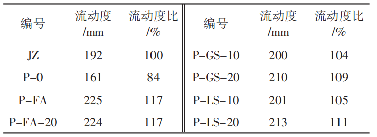 流動(dòng)度比和活性指數(shù)參考 GB/T 2419—2005《水泥膠砂流動(dòng)度測(cè)定方法》和 GB/T 17671—1999《水泥膠砂強(qiáng)度檢驗(yàn)方法(ISO 法)》進(jìn)行測(cè)試。