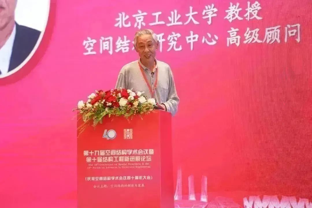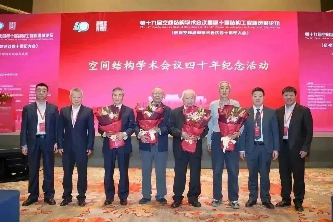 中國(guó)工程院院士、浙江大學(xué)教授、專委會(huì)顧問董石麟院士,中國(guó)工程院院士、哈爾濱工業(yè)大學(xué)教授、專委會(huì)顧問沈世釗院士首先發(fā)言,兩位院士向全場(chǎng)講述了空間結(jié)構(gòu)學(xué)術(shù)會(huì)議從籌備成立之初到如今四十載十九屆的輝煌歷程。北京工業(yè)大學(xué)教授、空間結(jié)構(gòu)研究中心高級(jí)顧問、專委會(huì)資深委員張毅剛,中國(guó)建筑科學(xué)研究院有限公司研究員、顧問總工程師、專委會(huì)資深委員趙基達(dá),全國(guó)工程勘察設(shè)計(jì)大師、北京市建筑設(shè)計(jì)研究院有限公司結(jié)構(gòu)總工、專委會(huì)副主任委員朱忠義也先后上臺(tái)發(fā)言,分享了和空間結(jié)構(gòu)學(xué)術(shù)會(huì)議一同成長(zhǎng)的感人故事。分享后的獻(xiàn)花環(huán)節(jié),則將慶祝活動(dòng)推上了高潮,老一輩空間人的先進(jìn)事跡,一直激勵(lì)著新一代人空間人砥礪奮進(jìn)。