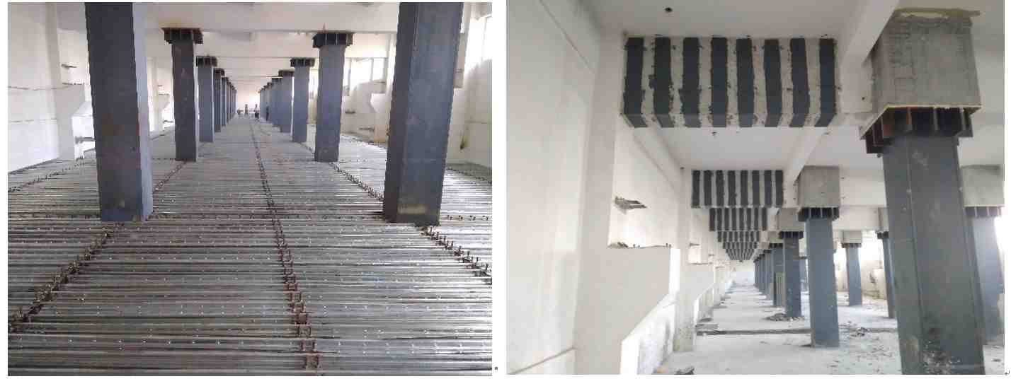 設計-施工一體化項目。建筑功能由研發(fā)中心改為數據中心,改造面積11.8萬㎡,加固方法幾乎涵蓋所有類型。