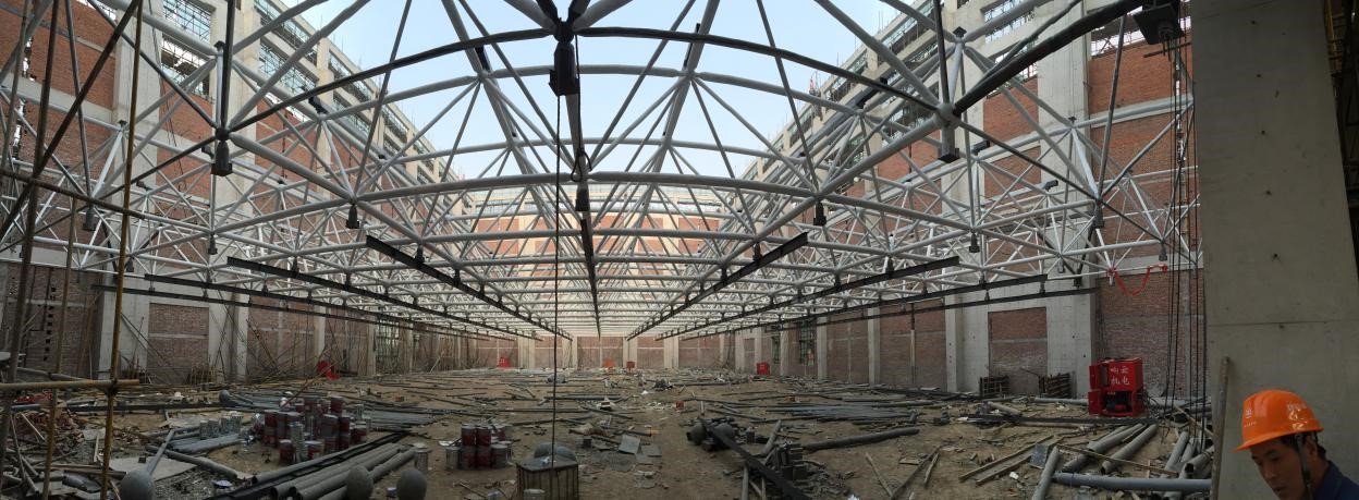 大廠電視傳媒產(chǎn)業(yè)園項(xiàng)目由6棟單體建筑組成,提升施工的范圍為1#~3#演播廳的屋面網(wǎng)架鋼結(jié)構(gòu),屋面網(wǎng)架均為正放四角錐螺栓球(局部焊接球)網(wǎng)架。提升總重量約為704t(含檁條、馬道等附屬結(jié)構(gòu)的總重量),其中,1#演播廳提升重量約為322t,提升高度約30m;2#、3#演播廳提升重量各為191t,提升高度約25m。