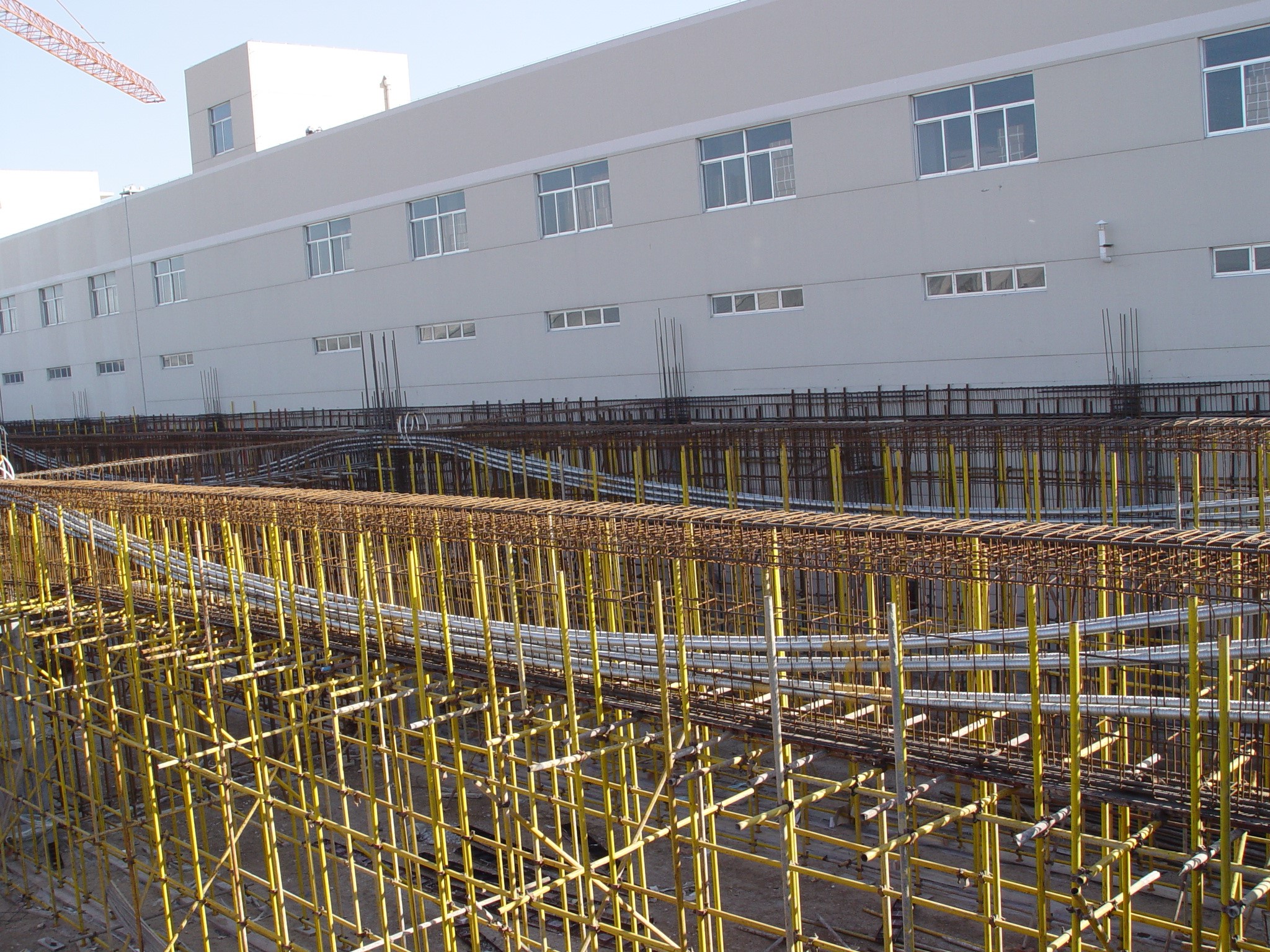 預(yù)應(yīng)力設(shè)計(jì)及施工。大平臺(tái)框架主梁及次梁采用了無(wú)粘結(jié)及有粘結(jié)預(yù)應(yīng)力技術(shù),解決大跨重載問(wèn)題,鋼絞線(xiàn)用量近2000t,完成預(yù)應(yīng)力設(shè)計(jì)與施工。